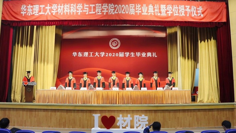 6月14日下午,材料科学与工程学院在徐汇校区逸夫楼举办2020届毕业典礼暨学位授予仪式。校党委副书记陈麒,材料学院学术委员会主任林嘉平,教学名师唐颂超,国际合作与交流处处长李永生,院长林绍梁,党委副书记李欣欣、戴诚安,副院长胡彦杰、顾金楼等出席毕业典礼。