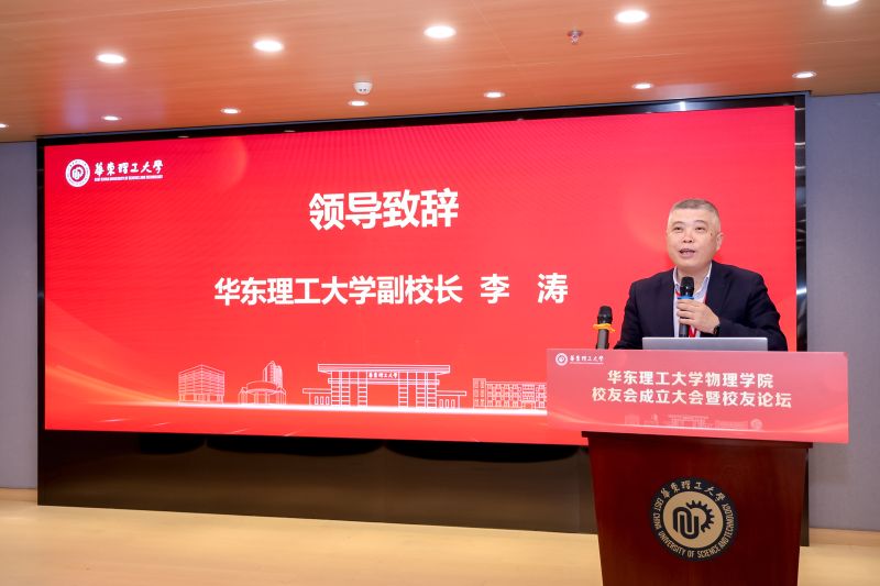李涛对物理学院校友会成立表示祝贺。他表示,学院成立4年多来,在人才培养、学科建设、科学研究等方面取得了长足的进步,离不开全体师生的不懈奋斗和广大校友的关心支持。面向“十五五”新征程,他希望校友会能够凝聚广大校友力量,共建“育人共同体”助力学生成长,联结“校友网络”促进资源共享,助力“学科发展”与学院同向同行,共同为教育强国建设贡献华理力量。